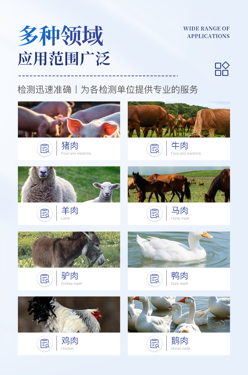 該儀器是一款**、便捷的食品檢測設備,專為識別肉類的真假而設計??梢詫ωi肉、牛肉、羊肉、馬肉、驢肉、鴨肉、雞肉、鵝肉等各種動物源性進行檢測。能夠迅速、準確地檢測肉類及肉源性種類,確保所食用的肉類真實可靠。檢測迅速準確,為各檢測單位提供專業(yè)的服務。