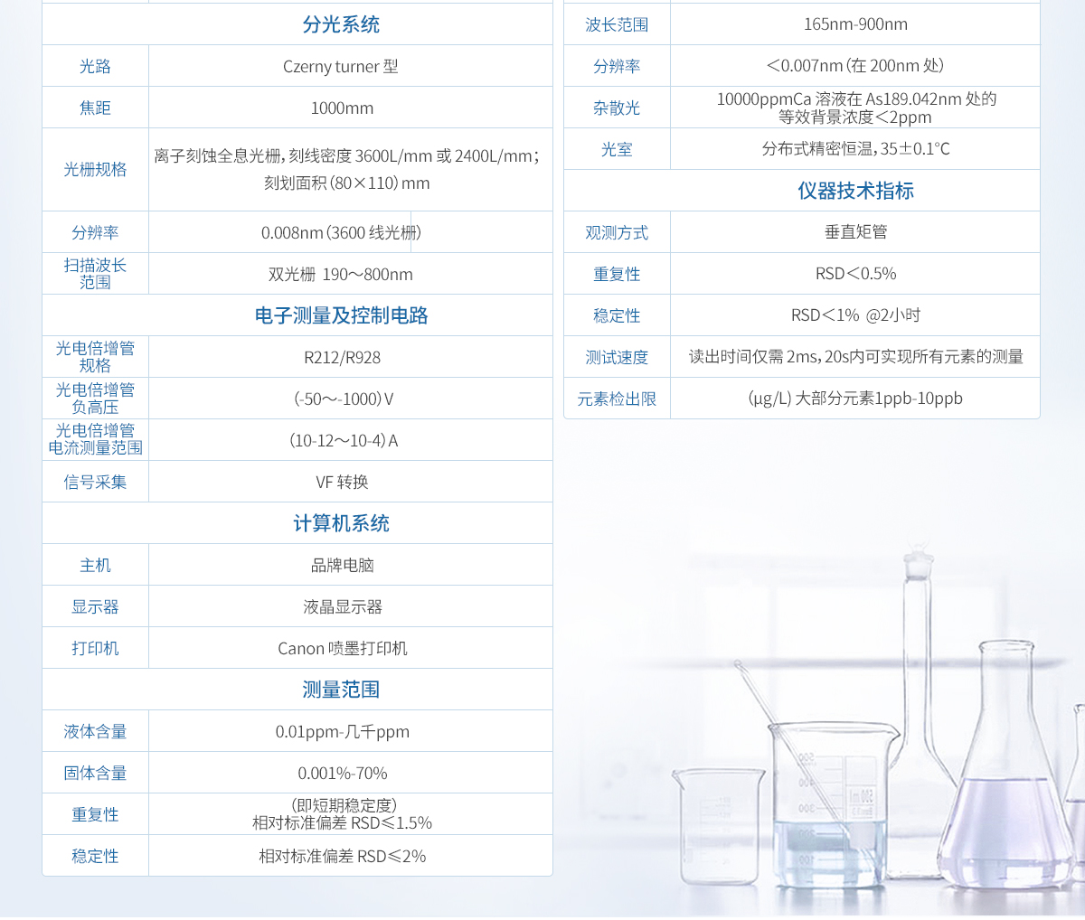 6、測量范圍 a.液體含量:0.01ppm-幾千 ppm b.固體含量:0.001%------70% 重復(fù)性:(即短期穩(wěn)定度)相對標(biāo)準(zhǔn)偏差 RSD≤1.5% 穩(wěn)定性:相對標(biāo)準(zhǔn)偏差 RSD≤2% 測試速度:5-10元素/每分鐘