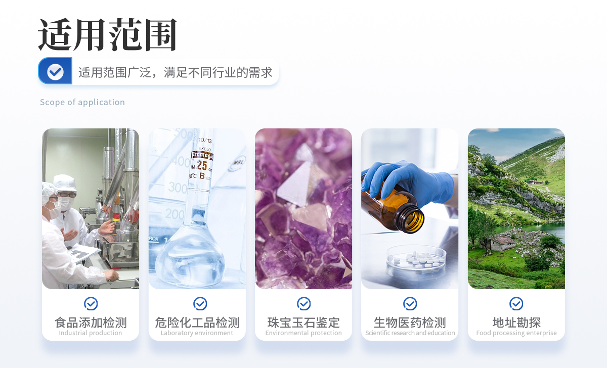 食品違禁添加物、色素添加、農獸藥殘留檢測 爆炸物、危險化工品、易燃易爆品檢測 珠寶玉石鑒定、文物鑒別 生物醫(yī)藥檢測、材料表征、地址勘探等 其他各類訂制應用