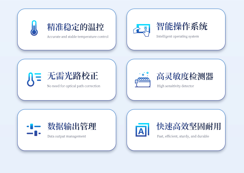| 1.智能操作系統(tǒng),實驗盡在掌握 | A雙模式靈活控制:支持通過儀器觸摸屏獨立運行,也支持通過電腦軟件進行遠程控制與數(shù)據(jù)管理,適應不同實驗場景需求。 | B程序更新與預設:支持在線更新實驗程序,并內(nèi)置豐富的預設實驗程序模板,用戶亦可自定義保存常用模版,實現(xiàn)一鍵快速啟動,極大提升操作效率。 | C極簡啟動體驗(可選配):可定制集成攝像頭掃描系統(tǒng),用戶只需掃描樣品板或程序卡的二維碼,即可自動識別并調(diào)用對應實驗程序,簡化流程,避免人為設置錯誤。 | D操作簡單:無論是觸摸屏界面還是電腦軟件,均設計得直觀易懂,新用戶也能快速上手。預置常用程序模板,進一步簡化操作流程。 | 2.精準穩(wěn)定的溫控與光學核心 | A長久精準的溫控系統(tǒng):采用進口***TEC半導體制冷模塊,控溫精準(±0.1°C),孔間溫度均勻性**(≤±0.3°C)。系統(tǒng)穩(wěn)定性卓越,長期使用性能衰減小,校準周期長達數(shù)年,顯著降低維護成本與運營中斷。 | B免維護的靈敏光學系統(tǒng):配備4個獨立LED光源與4個獨立光電二極管檢測器,實現(xiàn)四通道熒光同步精準檢測。采用超長壽命進口光源,設計壽命期內(nèi)免維護,無需額外校準或更換,保障檢測結(jié)果長期一致性與高靈敏度。 | C卓越的數(shù)據(jù)質(zhì)量:實驗線性相關性高(R2≥0.999),重復性優(yōu)異(孔間CV值低),確保定量結(jié)果準確可靠,數(shù)據(jù)置信度高 | 3.**便捷的數(shù)據(jù)與輸出管理 | A多重數(shù)據(jù)導出方式:支持通過USB存儲設備直接拷貝,或經(jīng)由Wi-Fi無線網(wǎng)絡傳輸數(shù)據(jù)至本地服務器或云端,方便靈活,滿足各類實驗室數(shù)據(jù)管理習慣。 | B豐富的報告導出與打?。褐С稚刹С龆喾N格式(如PDF、Excel)的實驗報告。儀器兼容USB熱敏打印機、藍牙無線打印機及常規(guī)A4打印機,可直接在儀器上或通過電腦一鍵導出并打印專業(yè)報告,便于結(jié)果存檔與即時分享。 | 4.快速**與堅固耐用 | A升降溫速度快:優(yōu)化設計的溫控系統(tǒng)具備高速升降溫能力,顯著縮短單次循環(huán)與整體檢測時間,提升實驗通量。 | B超長使用壽命:核心部件均選用工業(yè)級耐用材料與設計,整機運行穩(wěn)定可靠,致力于為用戶提供長久的投資回報。 |