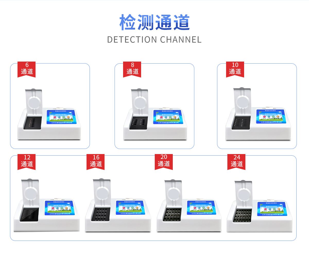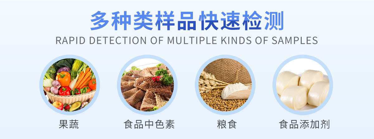 可快速檢測各類食品中的亞硝酸鹽、二氧化硫、甲醛、吊白塊、雙氧水、硼砂、農(nóng)藥殘留、乳及乳制品中蛋白質(zhì)、硝酸鹽、重金屬鉛的含量,儀器預(yù)留其他項目檢測程序和端口,根據(jù)日后需求可方便的自主增加檢測項目。